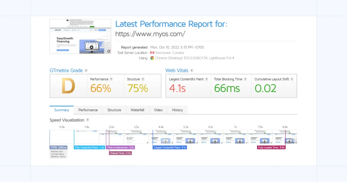 这是Myos一开始的时候,他们的网站健康度: