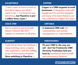 Pipedrive产品对比页面的特殊之处在于,他们如何在正面对比之前指出有意更换使用产品者的痛点。